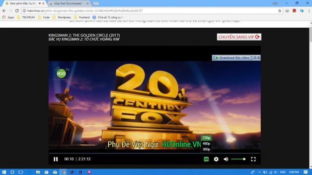 Bước 2: Sau khi cài đặt, hãy truy cập vào hdonline.vn và chọn một video bất kỳ để xem. Ở đây mình chọn Kingsman The Golden circle.
