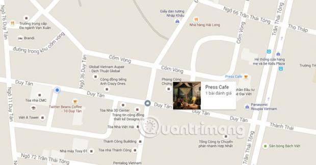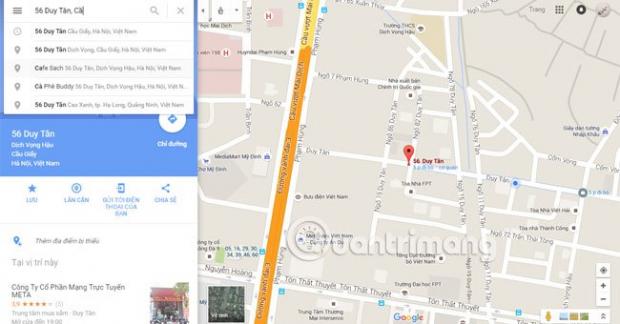 Khi kích chọn vào một vị trí túy ý trên bản đồ, bảng thông tin xuất hiện bên trái sẽ cung cấp chi tiết chẳng hạn như địa chỉ cụ thể, số điện thoại nếu có,...