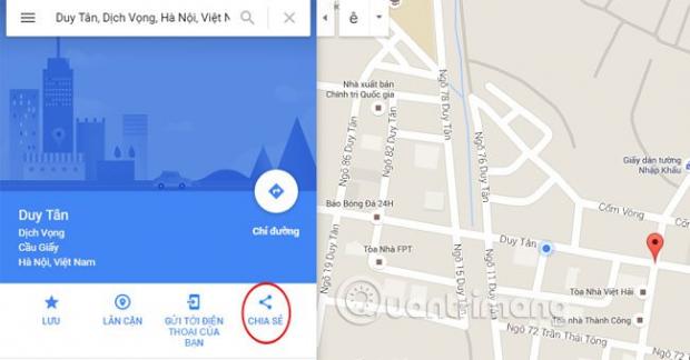 Sau khi tìm được vị trí cần tìm, chọn vào biểu tượng Chia sẻ.