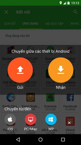 Trên máy nhận file, các bạn mở Xender lên, chọn NHẬN. Lưu ý là chúng ta có thể gửi tới nhiều máy khác nhau, nghĩa là trên các thiết bị đó các bạn cũng bấm NHẬN.
