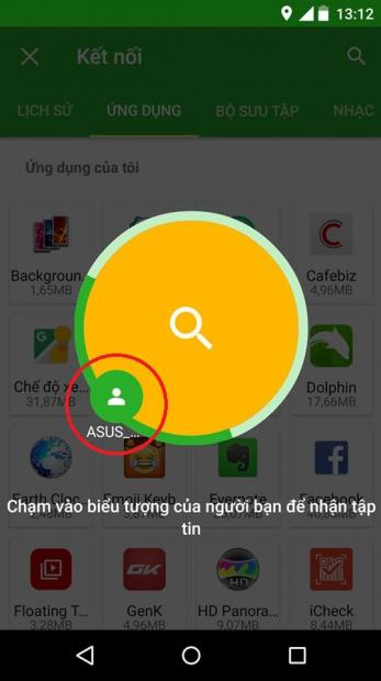 Máy nhận sẽ dò tìm máy gửi và phát hiện ra khá nhanh, các bạn bấm vào icon máy gửi để bắt đầu quá trình truyền file.