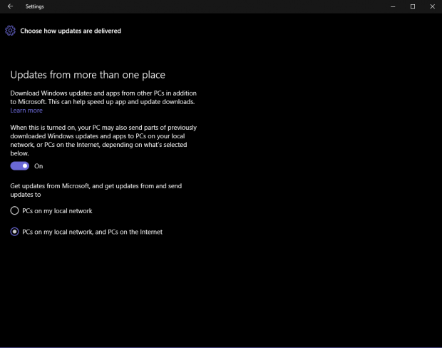 Theo mặc định, tính năng này được kích hoạt, tuy nhiên bạn có thể vô hiệu hóa tính năng này đi nếu muốn bằng cách truy cập Settings => Update & security => Advanced options => Choose how updates are delivered.