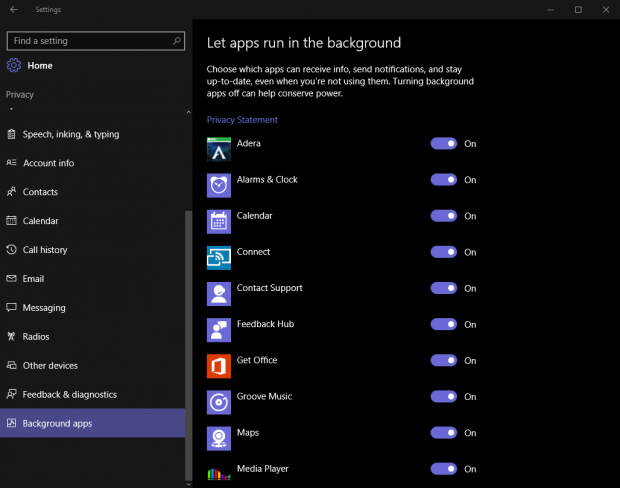Để vô hiệu hóa tính năng này, bạn vào Settings => Privacy => Background apps và tắt từng ứng dụng một.