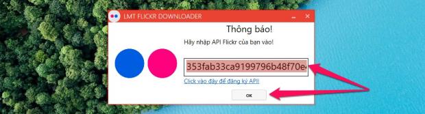 B5: Mở công cụ LMT Flickr Downloader và nhập mã API đã nhận được ở trên vào ô xác nhận là xong