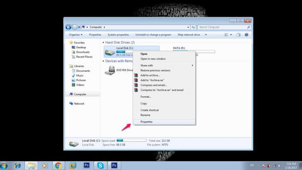 Bước 1: Chọn ổ đĩa cần kiểm tra, sau đó click chuột phải chọn Properties