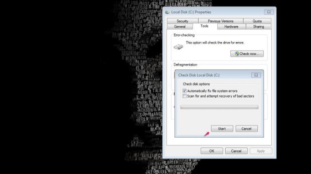 Bước 3: Click Start để tiến hành kiểm tra và sửa lỗi ổ cứng.