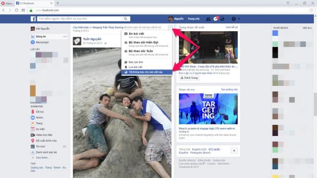 Các bước thực hiện tương tự trên smartphone, bạn mở Facebook trên trình duyệt web bất kỳ > chọn bài viết mong muốn > nhấn vào dấu mũi tên ở góc bên phải khung nội dung và nhấn vào dòng chữ 'Tắt thông báo cho bài đăng này'.