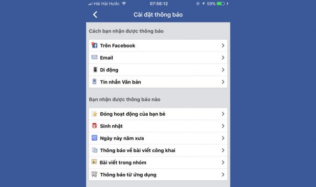 Bước 3: Tại mục Thông báo, bạn chọn các chức năng con để thiếp lập lại cách nhận hoặc các hoạt động cần thiết được nhận thông báo.
