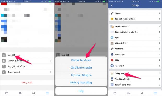 Bước 2: Cuộn xuống phía dưới và chọn mục Cài đặt > Cài đặt tài khoản > Thông báo