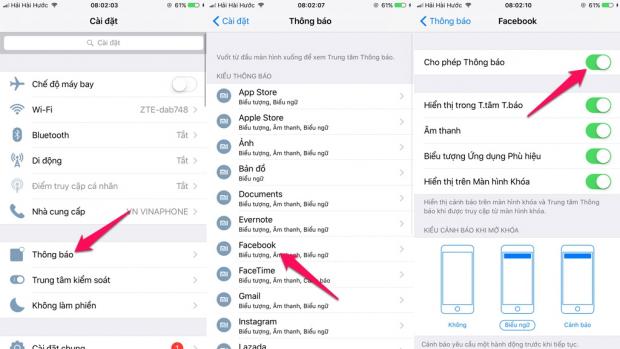 Mở mục Cài đặt trên smartphone > chọn Thông báo > chọn ứng dụng Facebook. Tại giao diện thiết lập ứng dụng, bạn chọn kiểu cảnh báo ưa thích từ ba chế độ là: None (không có), Banners (biểu ngữ) và Alerts (cảnh báo).