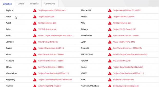 Các phần mềm diệt virus nhận diện thành công mã độc.