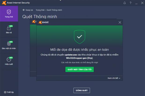 Trong hướng dẫn sau mình sẽ sử dụng Avast (bản dùng thử miễn phí) để tìm và diệt virus W32.FBCoinMiner.Worm.