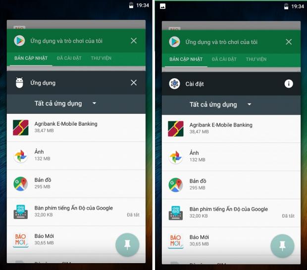 - Nhấn vào phím đa nhiệm (mở trình đa nhiệm) > Nhấn giữ vào biểu tượng ứng dụng trên thanh tiêu đề > Chọn vào biểu tượng chữ 'i' để truy cập cài đặt ứng dụng.