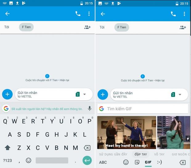 Truy cập vào Cài đặt > Ngôn ngữ là nhập liệu > Bàn phím ảo > Chọn Gboard để kích hoạt bàn phím mới. Tiếp đến vào ứng dụng nhắn tin (Zalo, Messenger, Viber...) > Nhấn vào khung nhập văn bản để mở bàn phím > Chọn vào biểu tượng biểu cảm trên bàn phím > GIF.