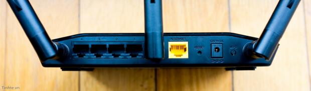 Mặt lưng có 4 cổng LAN, 1 công Internet, lỗ reset, lỗ nguồn và nút nhấn kết nối nhanh