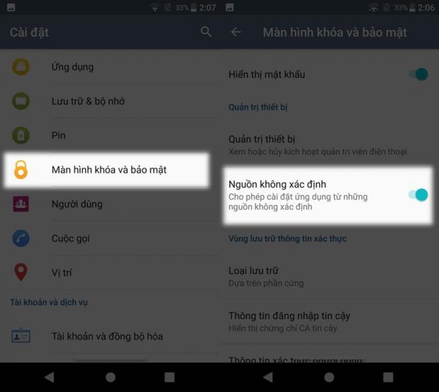 Để cài ứng dụng thì các bạn vào Cài đặt > Màn hình khóa và bảo mật > Tích mục Nguồn không xác định nhé. Mỗi hãng smartphone thì mục này nằm mỗi phần khác nhau.