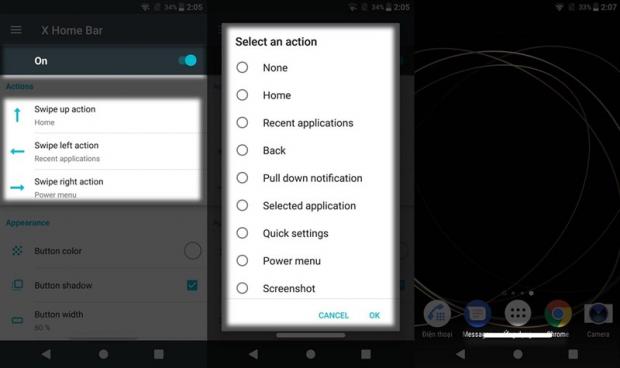 Có 3 thao tác chính là vuốt từ dưới lên, vuốt sang trái và sang phải. Phần mềm cung cấp rất nhiều tùy chọn cho 3 thao tác trên như: Chụp ảnh màn hình, đa nhiệm, tắt nguồn, vào setting, phím tắt nhanh, ... hay trở về màn hình chính như trên iPhone X.