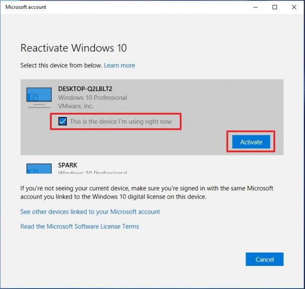 8. Lúc này trên màn hình sẽ hiển thị danh sách các thiết bị liên kết với tài khoản Microsoft của bạn. Chọn thiết bị mà bạn muốn kích hoạt lại.