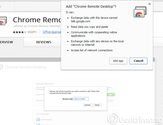 Khi cài add-on Chrome Remote Desktop trên trình duyệt, hệ thống sẽ yêu cầu như hình dưới, nhấn Add để tiếp tục: