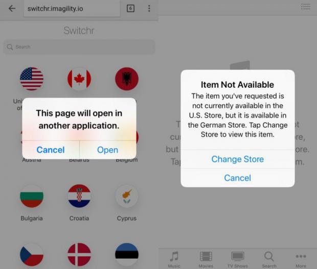 Bước 3: Lúc này trang web sẽ yêu cầu điều hướng đến App Store, nhấn Open để thực hiện > Sau đó trên App Store bạn chọn vào Change Store để hoàn tất quá trình chuyển đổi.