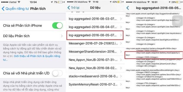 Cuộn xuống gần cuối sẽ thấy dòng com.apple.snapshot.battery.maxCapacity, tiếp đến tìm đoạn code XXX (XXX sẽ là dung lượng pin có thể sạc đầy trên iPhone của bạn)