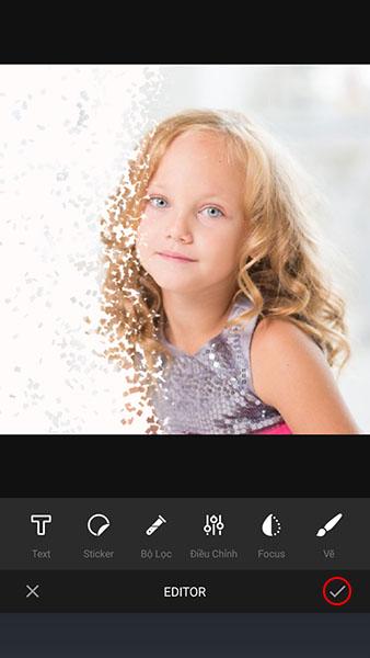 Sau khi đã có ảnh hoàn tất, sẽ có thêm các công cụ chỉnh sửa ảnh ở phía dưới như: thêm chữ, sticker, điều chỉnh màu, các bộ lọc màu và vẽ. Sau khi đã chỉnh sửa như ý bạn hãy nhấn tiếp vào dấu tích nhé.