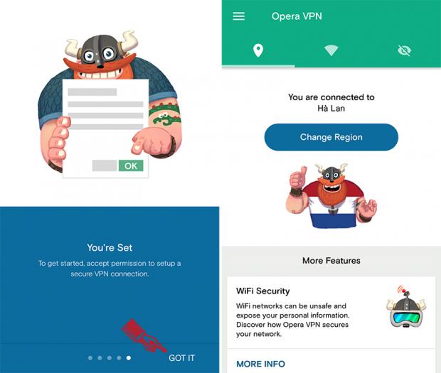 Bước 3: Sau đó nhấn GOT IT > Lúc này Opera Free VPN sẽ yêu cầu quyền truy cập vào tính năng VPN trên thiết bị của bạn, hãy chọn OK để xác nhận cấp phép.