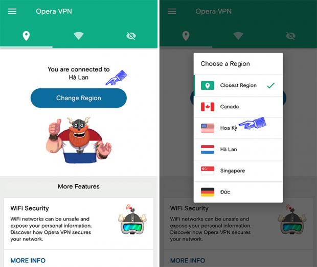 Ưu điểm của Opera Free VPN nằm ở tốc độ kết nối và truy vấn dữ liệu khá nhanh, không có quảng cáo làm phiền trong quá trình sử dụng.
