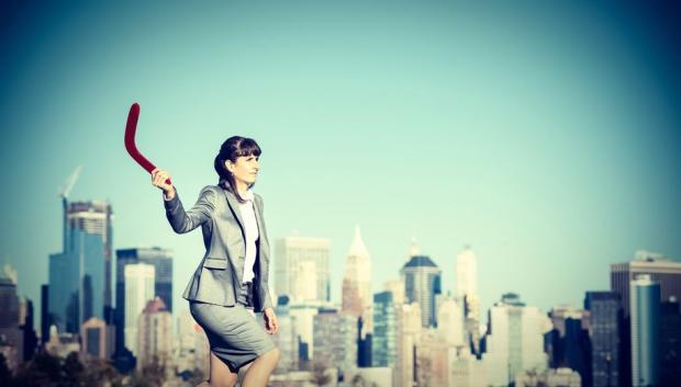Chiếc boomerang là dạng que ném dẹt hình chữ 'V' xuất xứ từ Châu Úc với đặc tính là luôn tự bay trở về sau khi ném. Nhân viên kiểu 'boomerang' ám chỉ những người đã từng rời khỏi công ty và sau đó, muốn quay trở lại làm việc.