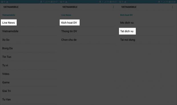 Sau đó chúng ta chọn tiếp Live News > Kich hoat DV > Tat dich vu.