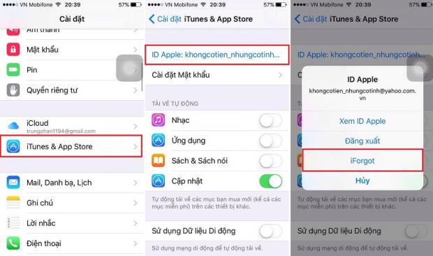 Cách khắc phục: Chọn quên mật khẩu tiến hành nhập mail mới để Apple gửi mã kích hoạt lại cho bạn. Sau khi nhận mail kích hoạt bạn có thể đăng nhập bình thường.