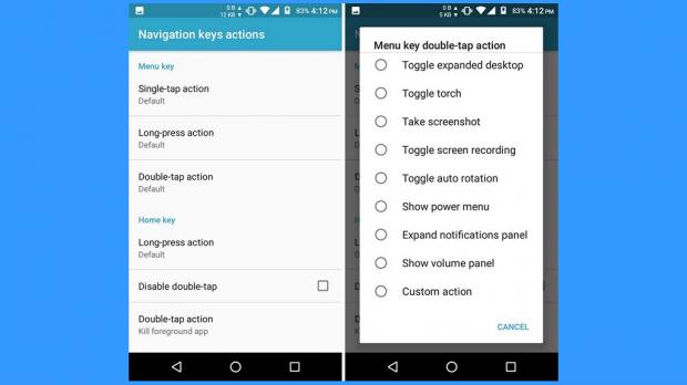 Bước 6: Bạn cũng có thể tùy chọn thêm chức năng mới cho các phím điều hướng như thiết lập Sigle-tab, double-tap, back, back home ... Thậm chí bạn có thể thiết lập các hành động tùy chỉnh với các ứng dụng của bên thứ ba.