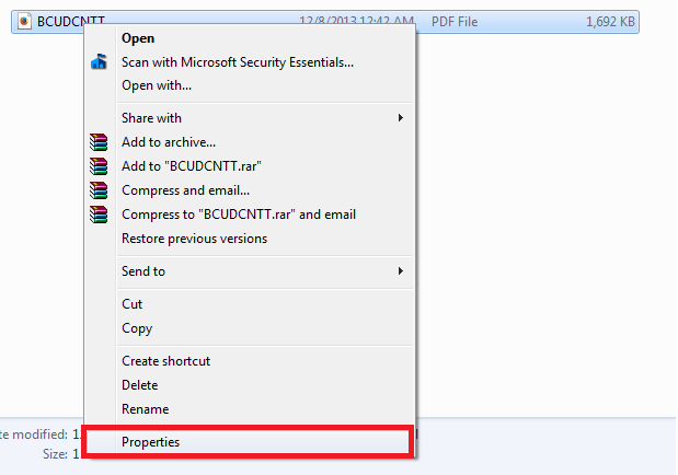 'Chuột phải' vào tệp tin .pdf chọn 'Properties'