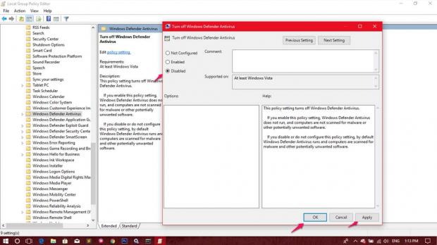 Computer Configuration/Administrative Templates/Windows Components/Windows Defender