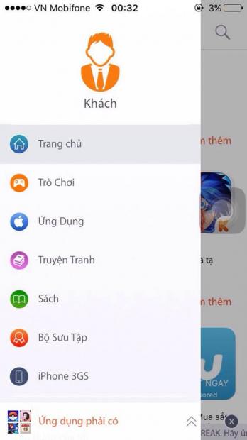 Khi truy cập vào Menu ở góc trái, bạn còn có thể lựa chọn những mục cụ thể như: Trò chơi, ứng dụng, sách, truyện,...và những ứng dụng đã tải về.
