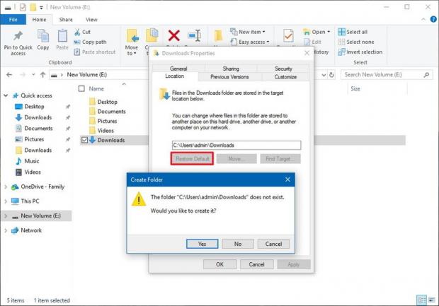 - Tại 'lô đất mới' này, hãy tạo thư mục có tên y hệt với thư mục cần di chuyển đến (Desktop, Documents, Downloads, Pictures, Videos hoặc Music)