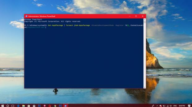 - Nhập: Get-AppXPackage | Foreach {Add-AppxPackage -DisableDevelopmentMode -Register “$($_.InstallLocation)AppXManifest.xml”}