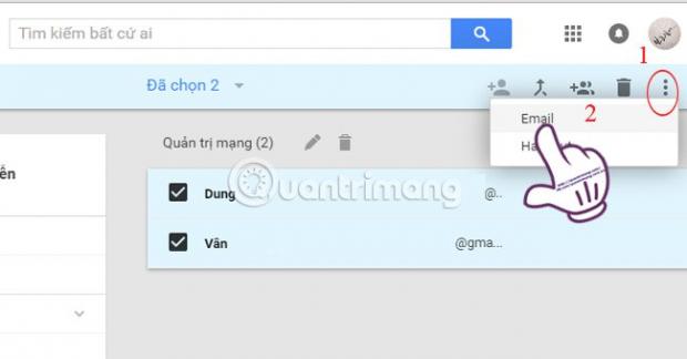 Sau đó, nhấp chuột trái vào dấu 3 chấm trên cùng màn hình bên phải vào chọn Email để gửi mail cho nhóm.
