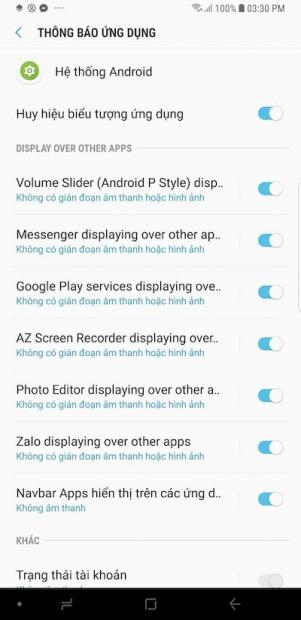 Những thông báo này giúp cho bạn biết ứng dụng nào đang chạy ngầm và sử dụng năng lượng, cũng như các ứng dụng nào đang hoạt động đè lên ứng dụng khác, nhìn chung là chỉ để người dùng quản lý máy tốt hơn. Tuy nhiên, chắc chắn không ít bạn cảm thấy khó chịu với và muốn tắt đi.