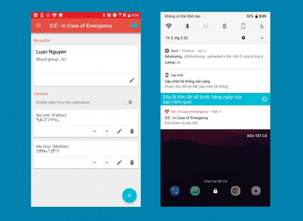 - Để sử dụng: ngoài màn hình khóa, trong danh sách thông báo, tìm biểu tượng hình trái tim, ấn vào thì app sẽ chạy lên với đầy đủ thông tin cá nhân của bạn