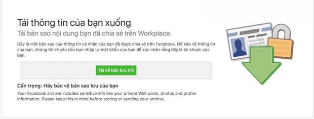 Trước khi tiến hành xoá tài khoản, bạn nên lưu trữ các thông tin cá nhân trên Facebook như hình ảnh, các hoạt động, lịch sử trò chuyện, địa chỉ IP, dữ liệu nhận diện khuôn mặt, các quảng cáo đã nhấn,.... để sau này có thể truy cập lại nếu cần. Để tải các dữ liệu này về, bạn hãy vào “Cài đặt' rồi chọn “Tải xuống bản sao dữ liệu Facebook' rồi click “Tải về bản lưu trữ'.