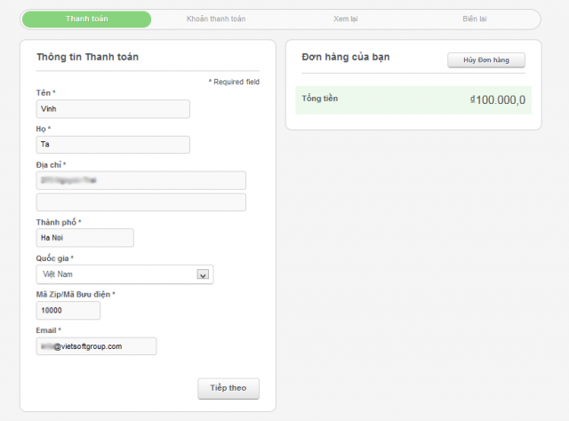 B4 : Bạn sẽ chuyển tới một trang nhập thông tin cá nhân, hóa đơn thanh toán.