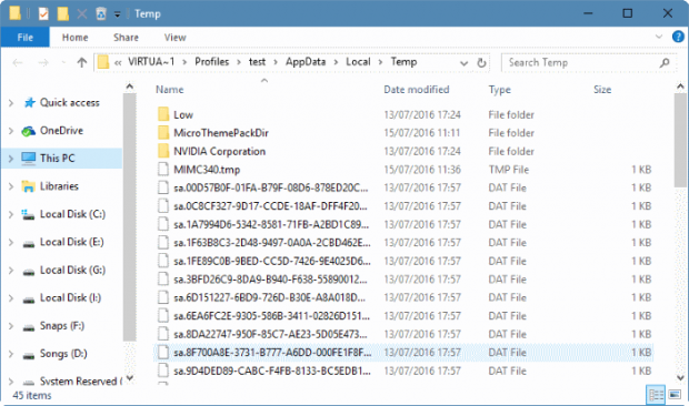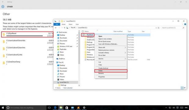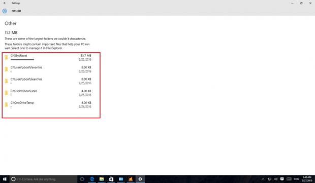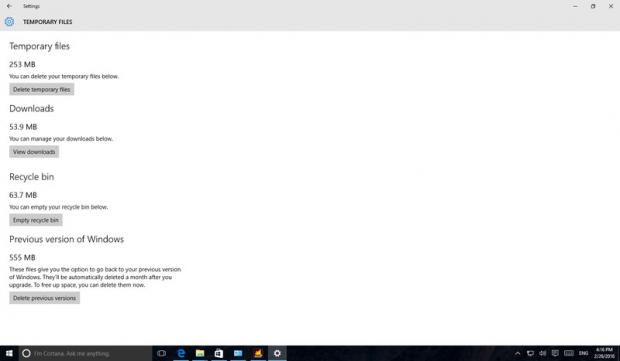 Lưu ý rằng Windows 10 sẽ cộng cả không gian sử dụng bởi các thư mục Download, Recycle Bin, phiên bản trước của Windows (thư mục Windows.old) và thư mục các tập tin tạm thời trong quá trình tính toán kích thước các tập tin tạm thời.