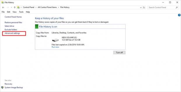 3. Ở danh sách các tùy chọn khung bên trái, click chọn Advanced settings.