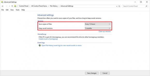 4. Dưới mục Versions, bạn có thể thay đổi tùy chọn mặc định cho Save copies of file và Keep saved versions bằng cách click vào menu Dropdown và chọn tùy chọn phù hợp nhất.