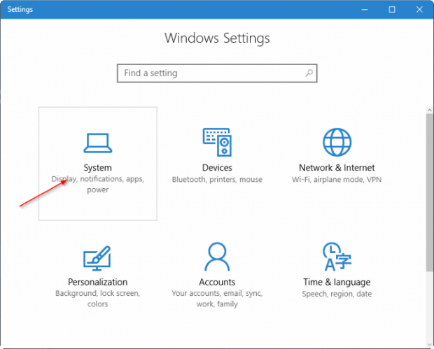 Tiếp theo trên cửa sổ Settings, bạn click chọn biểu tượng System.