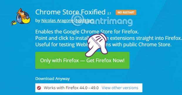 Chúng ta sẽ sử dụng tiện ích Chrome Store Foxfixed để có thể cài đặt add-on trên Chrome sang Firefox nhanh chóng.