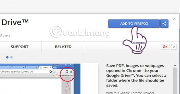 Bây giờ, bạn hãy thử truy cập vào tiện ích được cài đặt trên Chrome nhưng không thể cài đặt trên Firefox. Chẳng hạn tôi sẽ tiến hành cài đặt tiện ích Save to Google Drive.