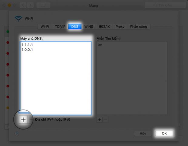 Sau đó chọn biểu tượng + và điền đoạn mã 1.1.1.1, tiếp tục chọn dấu + và thêm tiếp 1.0.0.1, sau đó chọn OK và áp dụng để lưu lại thay đổi.