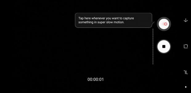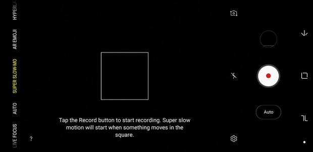 Chức năng quay siêu chậm (super slomo) có sẵn trên giao diện camera của S9/S9+, chỉ cần vuốt sang là có thể sử dụng. Có hai chế độ quay super slomo, auto (tự động) và manual (thủ công).
